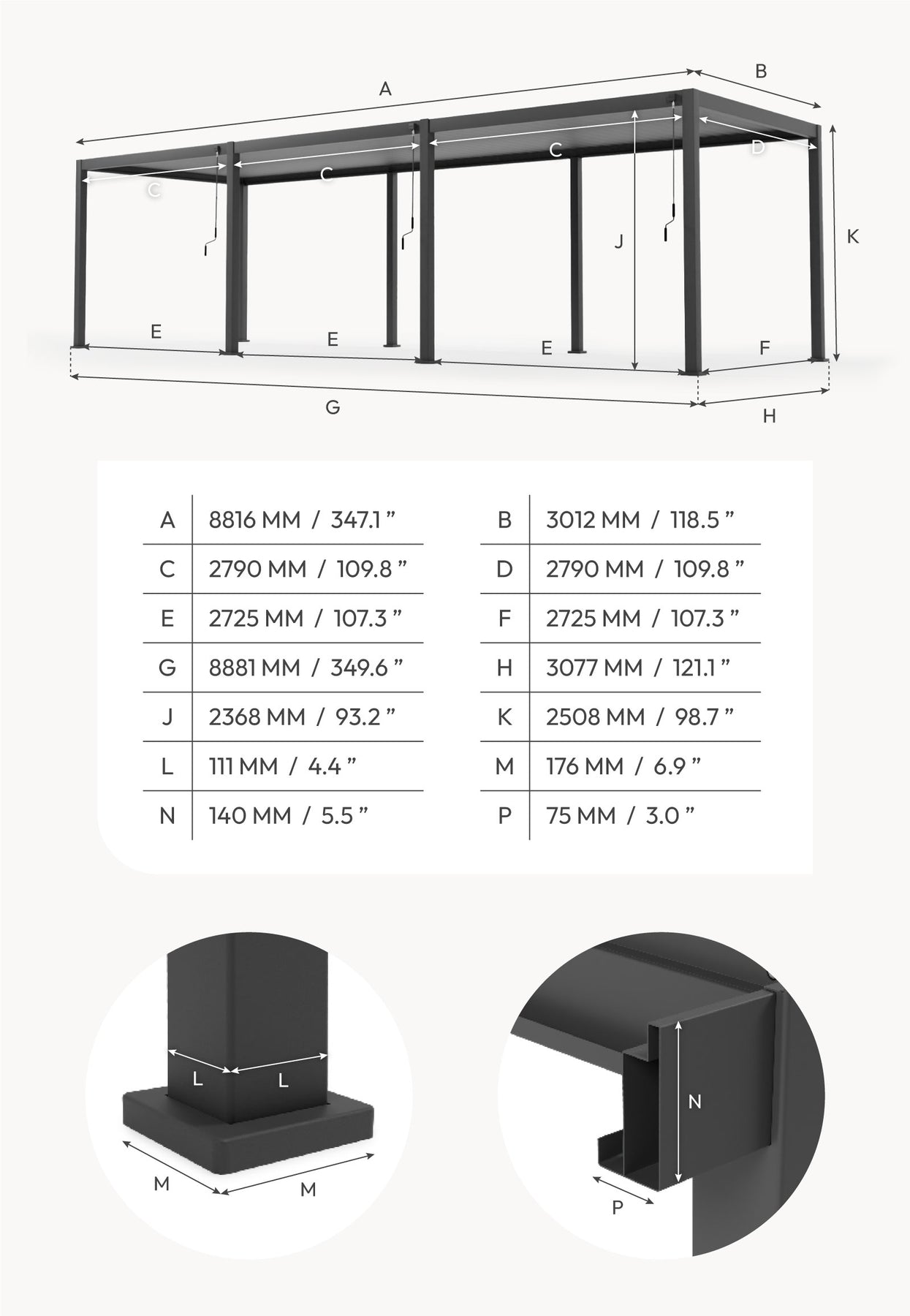 9M x 3M Rectangular NOVA TITAN Pergola GREY New 2025 Model