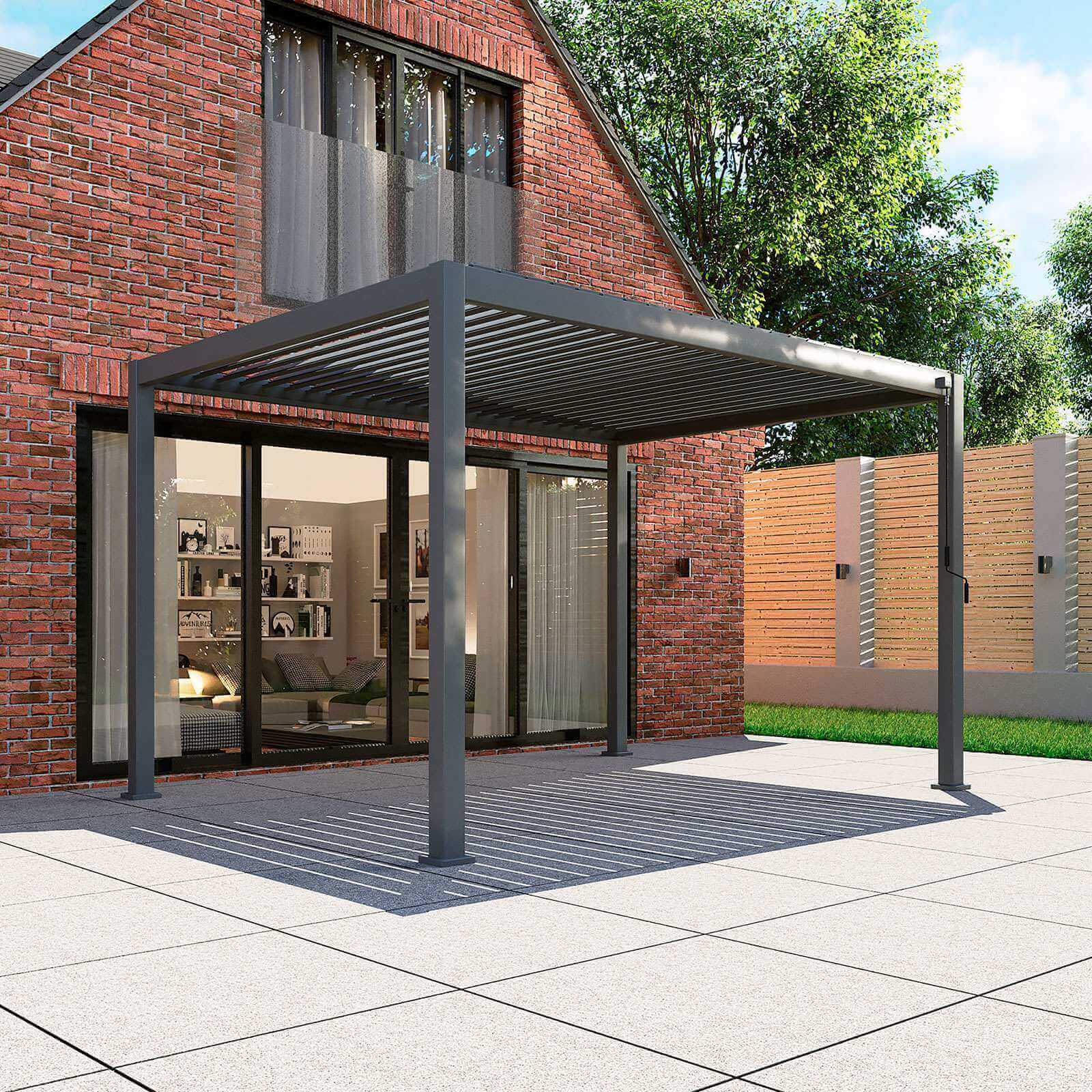 This pergola is the perfect opportunity to extend your outdoor season. Thanks to the tilting double-layer louvres, you can switch between a closed, sheltered space and an open top which allows sunlight to come flooding in. This means that you can use your outdoor area even when the weather is less than perfect. This pergola ultimately allows you to choose between sitting in sunshine or shade and provides a fully waterproof roof should it start to rain at a moments notice - typical of British weather!