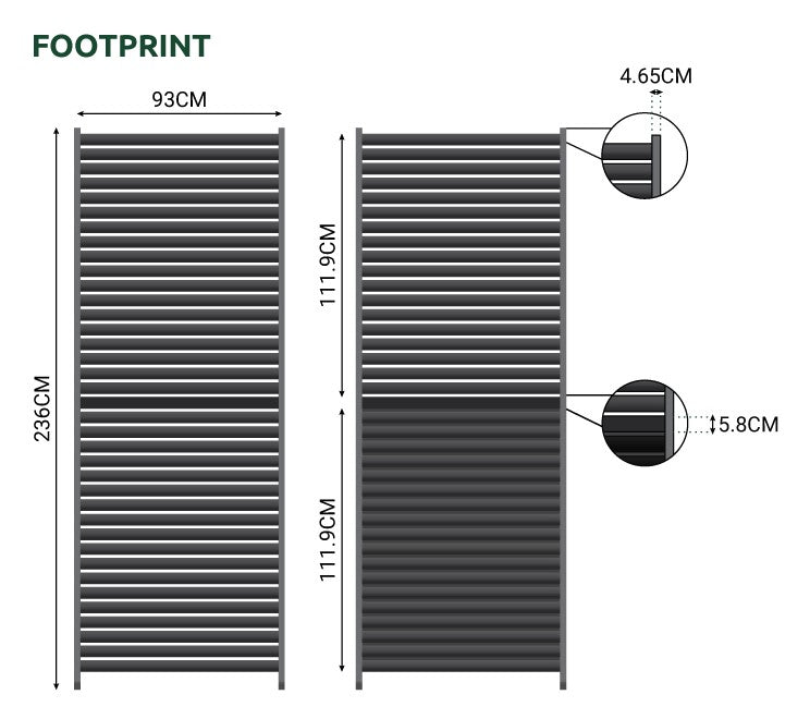 1M NOVA TITAN Aluminium Side Wall for 3M WIDE Nova Titan Pergola GREY - ADJUSTABLE LOUVERS